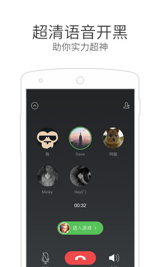 3.多人边玩边聊:微信电话本高清多人通话,和好友边玩游戏边聊天,给你加倍乐趣;