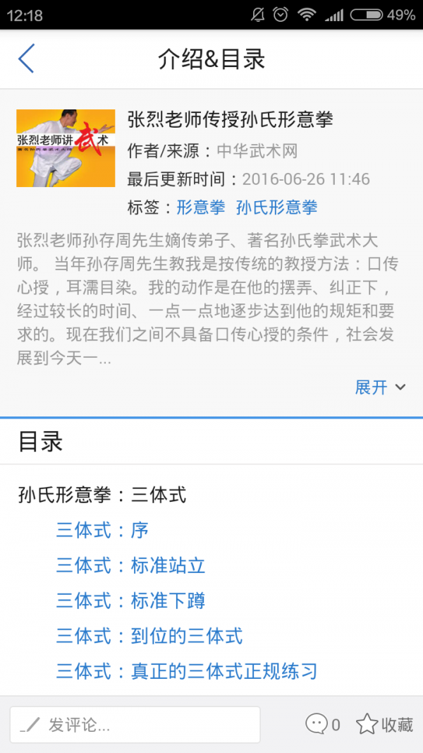 自学武术app是一款非常方便的生活服务软件!它的主要功能是中国武术相关书籍并免费提供给用户在线阅读,一方面满足用户对中国武术的好奇心;另一方面给中国传统文化一个发扬普及的平台!有了它,用户自学习武,强身健体不再找不到平台了!收集天下武学,每天不断增加和更新各种武术功法秘籍,立足于互联网,努力为武友们缔造一个专业性的移动武学藏经阁。