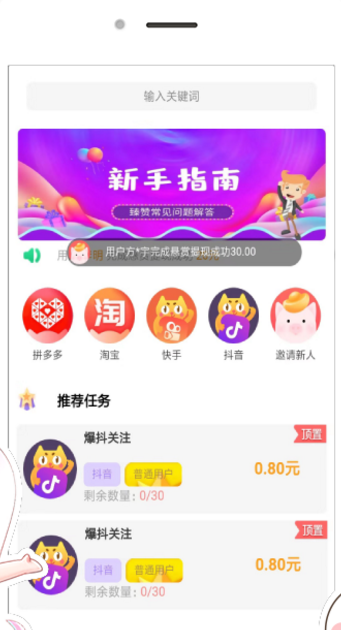 触赞赞源码官方版是一款很好用的抖音点赞赚钱的平台,能够让大家在简单地点赞动作之后,就可以获取一定的劳动所得,真的超轻松了。软件完全免费注册,用户可以自由领取任务,平台有着极速很合的流程,用户完成任务后佣金都是当场就到账的,而且没有任务数量的限制,不需要会员也可以无限做,每天赚的钱都进入你的钱包,随时都可以提现。只需要手机下载即可开始赚钱,点赞、评论、关注都有奖励,非常简单。很多的用户都不喜欢在线上做一些很麻烦的网赚任务,虽然可以赚钱,但是需要的操作也太多了,太消耗时间了,完全得不偿失的样子。这个平台就不会出现这种问题,让大家可以开心的在上面赚钱了。