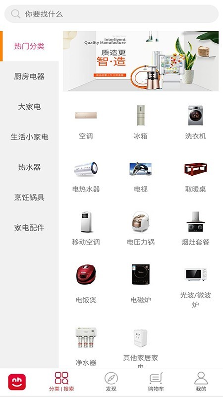 拿货商城,汇聚优品家电,通过整合供应商、经销商、零售商、物流商、金融服务机构、仓储服务商等资源来完善产业链信息、物流、金融等渠道,实现优品低价,优品良配,优品惠万家,使家电产业与乡镇小店全渠道对接,让乡镇家电门店有更多进货选择。