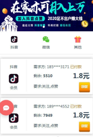 用户每天在平台中做点小任务,一个月下来保证自己的佣金额度也不低