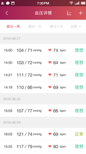 你能关联机器设备,根据app纪录数据监测,随时都能查寻自身的历史记录统计分析;你能随时随地检测数据统计,而且早晚各一次,能够清晰的了解本身人体数据信息转变状况;为您提供了数据信息统计信息,根据趋势图的方法展现让你,便捷你开展浏览查寻。