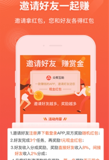 2.邀请好友加入,可以获得佣金,邀请的人数越多,获得的佣金就越多;