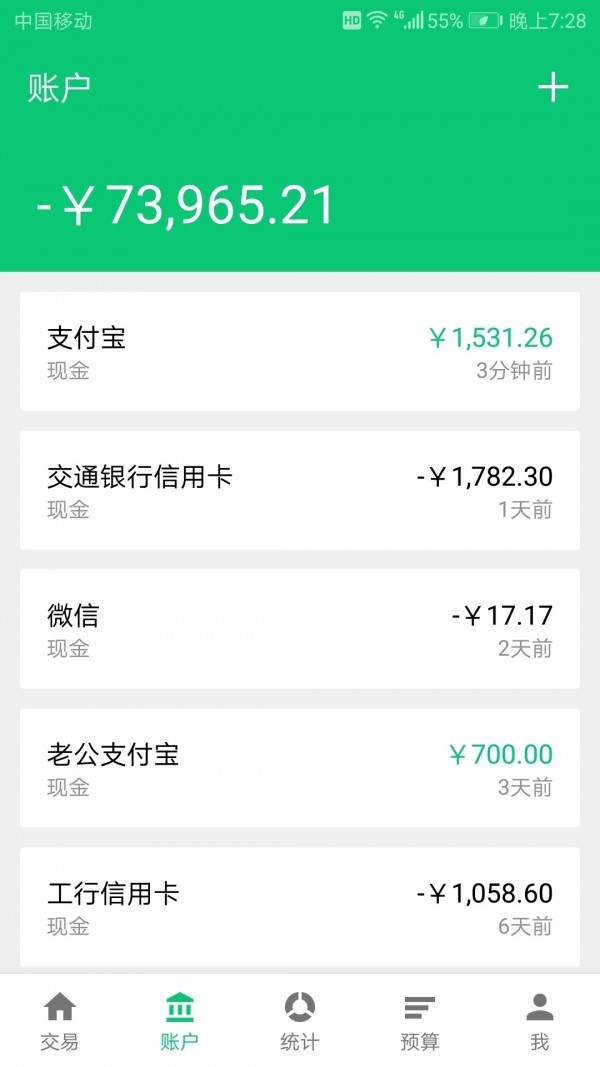 支持多账户,包括信用卡、借记卡、钱包和充值卡等;