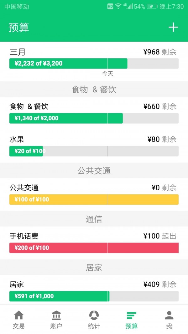 支持分类预算,支持项目、商家、备注、位置、日期和标签等多维度信息录入;