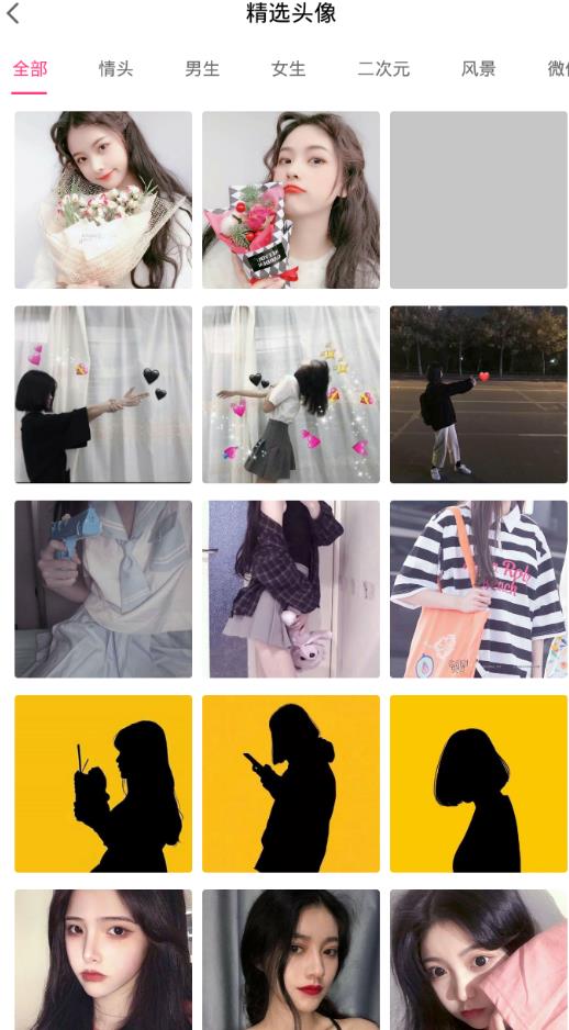 4、大量的头像素材,不管是男生的还是女生的都很好看,下拉即可刷新,还有很多情侣头像哦。