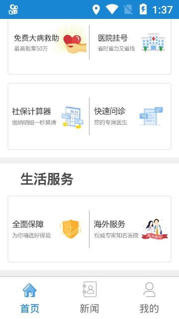 3、平台提供了各种医保报销,疾病费用申请,急救挂号等项目功能。