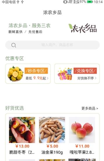 浓农生活app是专为人们打造的一款一站式的农商服务平台,在这个应用软件中用户可以购买到诸多的农产品,如苹果、冬枣、杨梅、梨子、荔枝、豆腐干、月饼、丝瓜、南瓜等等,非常的方便,在这里的所有水果都是优质新鲜的质量保证,给用户提供售后保障,支持退换货,你可也放心的进行购买。此app中也有着其他的一些生活用品可以进行使用积分进行兑换,诸多的优惠活动等你参与,让你可以购买到放心、安全的农产品而服务,喜欢的朋友赶快来下载浓农生活app来进行使用吧。