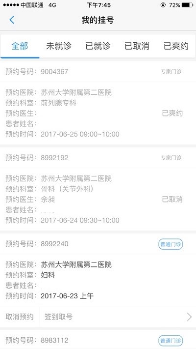 拥有专家门诊和普通门诊,根据自己的需求来选择预约,自己的所有挂号记录都会保存,随时都能查看;