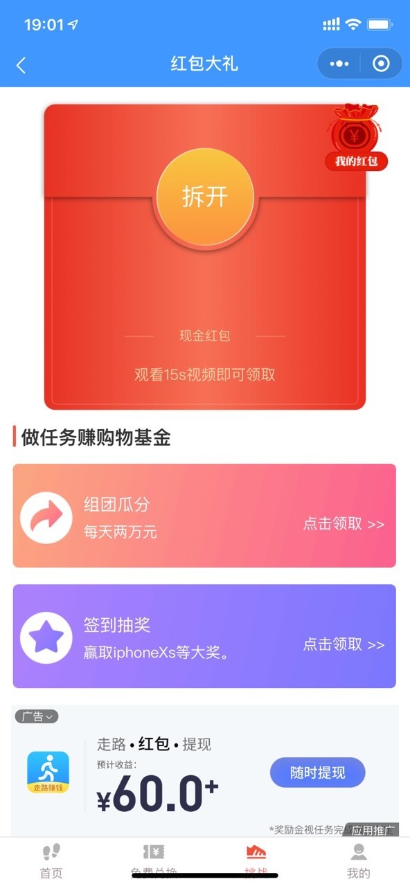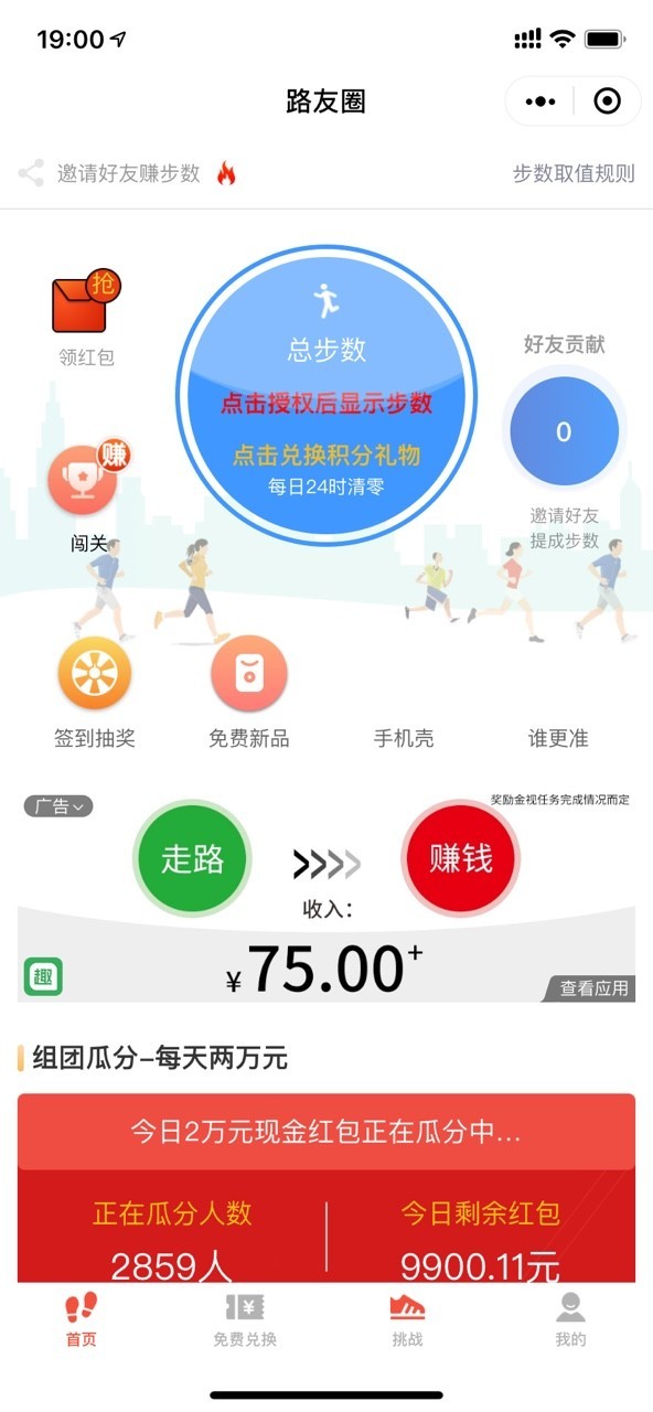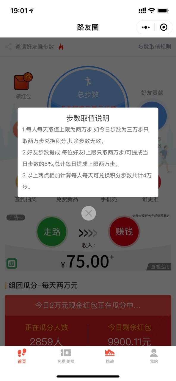 步数挑战赛——每天5000步,走路挣钱分奖励