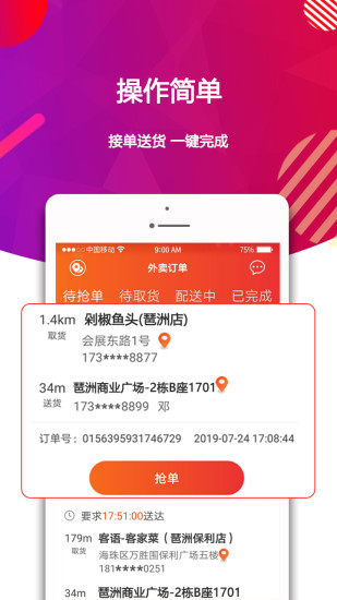 【操作简单】订单的接单到完成只需简单操作;不繁琐;