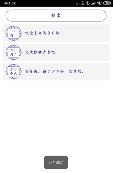 2.很舒适简洁的界面设计,看上去极度的舒适,添加日记不难;