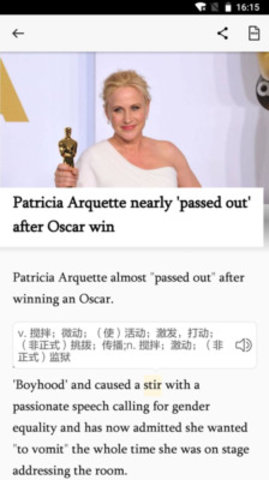 2、其中的英语文章都有详细的翻译,帮助大家及时的掌握时事资讯,同时还可以学习提高英语水平。