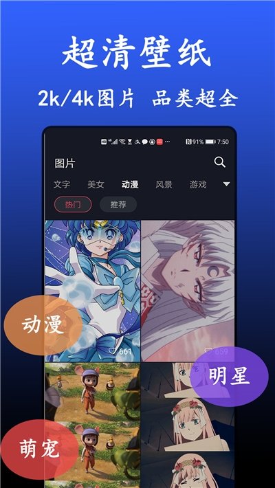 动态壁纸高清大全是一款安卓手机超高清壁纸大全,汇集了多种壁纸图片类型,包含了动漫壁纸、明星壁纸和萌宠壁纸等壁纸类型,所有的壁纸图片都是2k或者4k的,进行了壁纸类型细分,用户查找心仪壁纸更方便,随时下载设置成手机桌面和锁屏壁纸,下载即可使用哦!