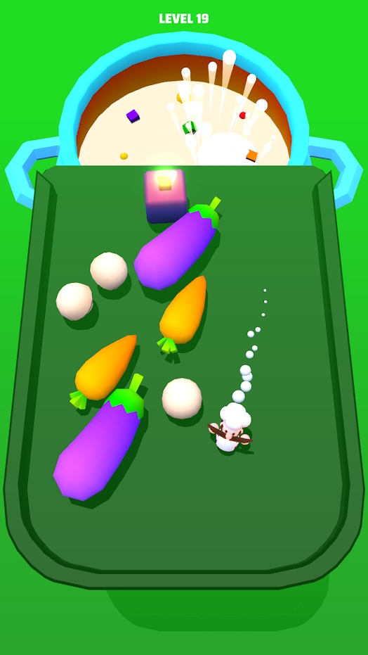 1、运用传统的厨师主题,画面中会呈现一个巨大的锅,以及被缩小的人物,你将会扮演厨师的人物进行文娱;
