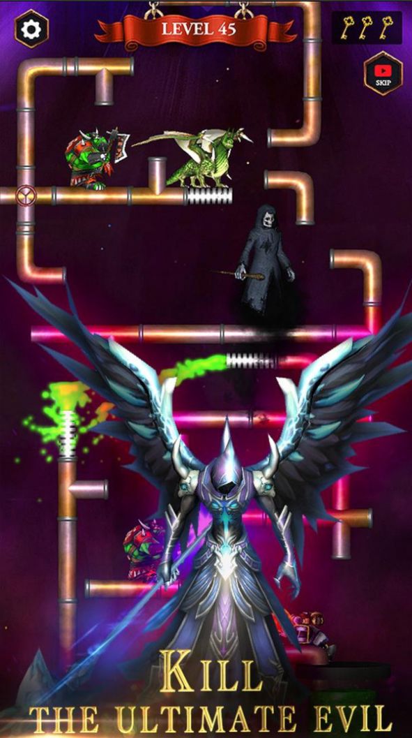 水管工英雄游戏是一款全新的魔幻界面的手游,其中玩法新颖,需要玩家们开发脑筋,运用智慧把各种水管连接到一起,这样才能消灭敌人,里面丰富的游戏关卡带给玩家完全想象不到的全新游戏体验,欢迎来试玩。玩家将背负起拯救世界的重任。这里已经被强大的恶魔占领了,而人类却没有办法对抗他们。作为一名水管工,你突然发现这些恶魔还是有一些弱点的,他们害怕从你的管道中流出的特殊液体,于是人类将他们带入水管世界,用水管工的武器消灭他们。