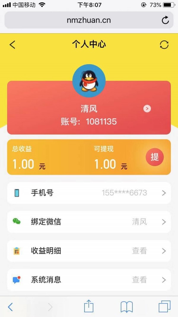1.做的任务收益,满一块钱,就可以在线的提取,一天有三次的机会提款;