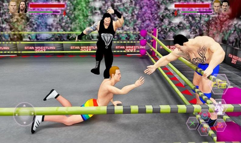 1.完美还原WWE自由搏击格斗中的摔跤竞技玩法,让我玩家的感受真正的热血激情;