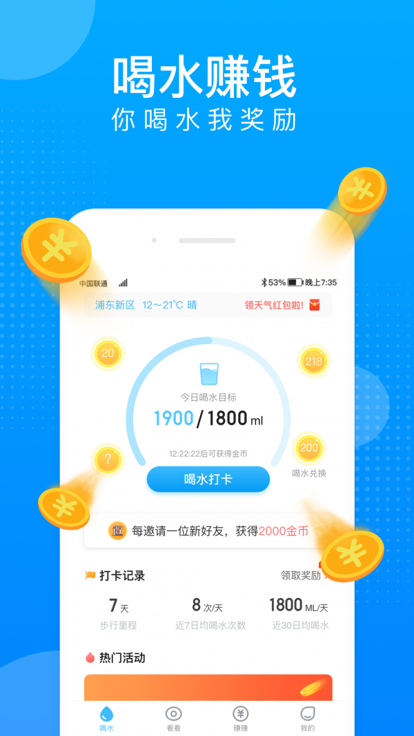 喝得越多赚越多,让您养成更好的喝水习惯,喝水更加有动力。