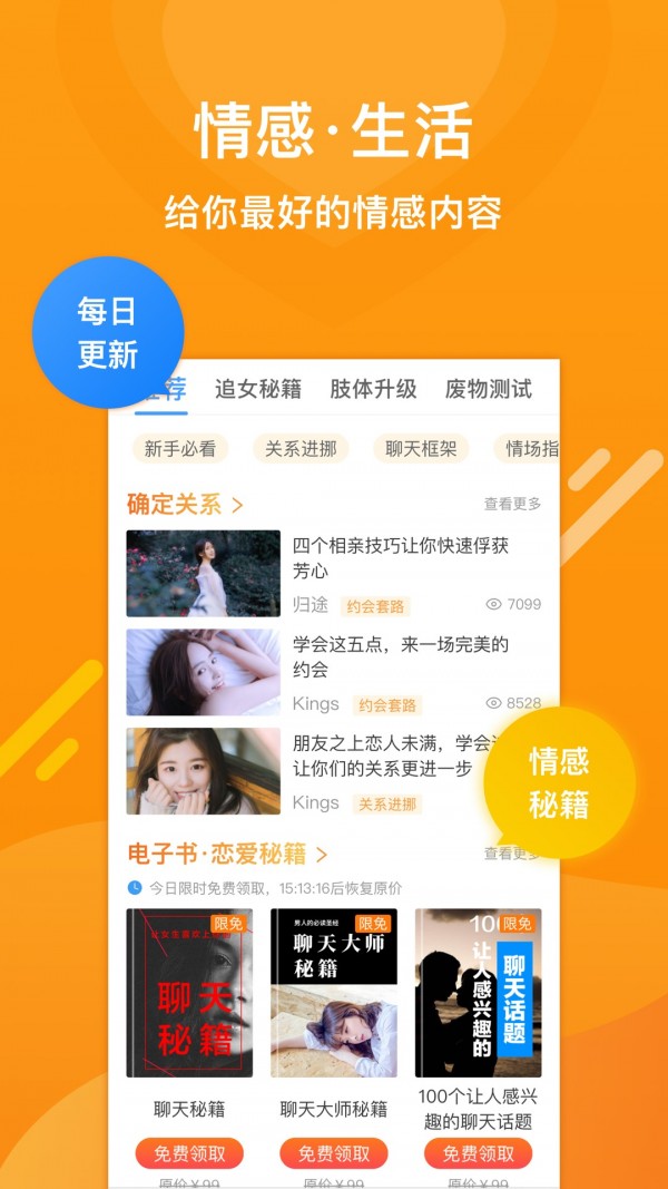 每日为您更新和添加情感干货,实时学习对应的课程;