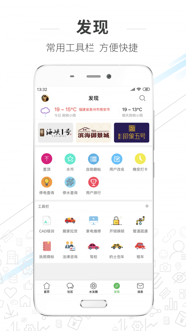 水头在线app是本地生活社区服务平台,平台提供水头本地各类资讯信息,可在线查看房屋租赁,交易信息与在线交友等功能,让水头居民有着自己的聊天社交平台,水头在线app功能非常齐全,包括租房、找工作、二手买卖、美食等一系列生活服务以外,还能在水头在线app结识更多同城有缘人!有需要的用户欢迎下载使用。