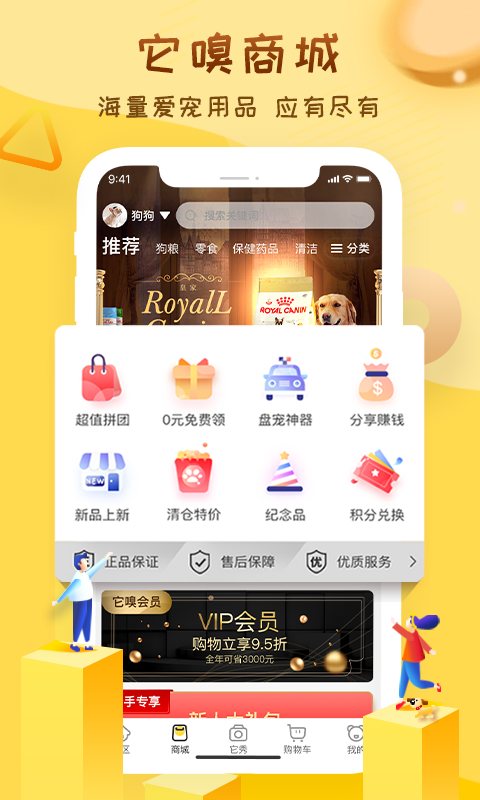 1、海量商品,宠物主粮、猫狗零食,爱宠用品应有尽有