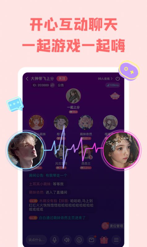 2、多种玩法任你体验,不管是以歌会友、处CP还是游戏开黑都能使用;