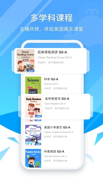 鲸鱼外教培APP提供了全方位的学习体系,从字母入门到情景对话,丰富的配音内容,分级的视听素材,多元化的英语情景,图多字少的形象化教学,为孩子打造轻松学英语的语言环境。研发趣味的卡通动画课堂。开创性地融入情景化、互动化、游戏机制化等形式,让中国孩子像英美国家孩子一样学习英语,英语能力得到国际化、实用化提升。从此爱上英语!
