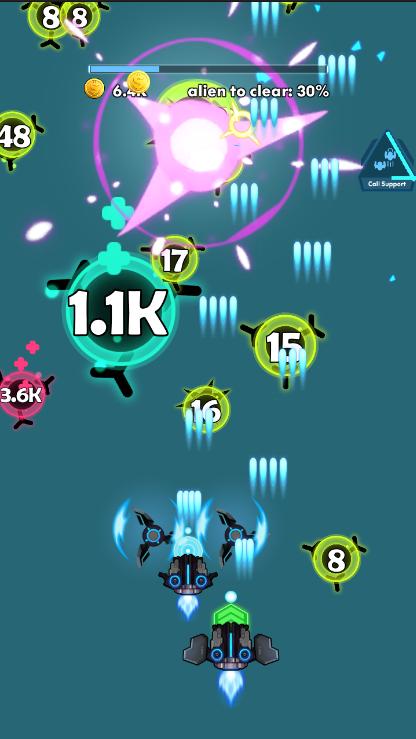 消灭外星病毒游戏是一款非常休闲的飞行射击游戏,这里的敌人都是以数字的形式出现的,消灭掉所有的病毒挑战boss,不断的升级你的战机和武器,购买更多的道具来对抗更加强大的敌人,炫酷的特效带你享受不一样的射击体验,充满趣味性的玩法绝对会让你上瘾,用你风骚的走位躲避攻击开始闯关吧!