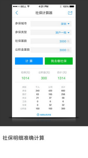【社保明细】根据所在城市和工资基数,快速计算出社保缴纳明细,让社保缴得更明白。