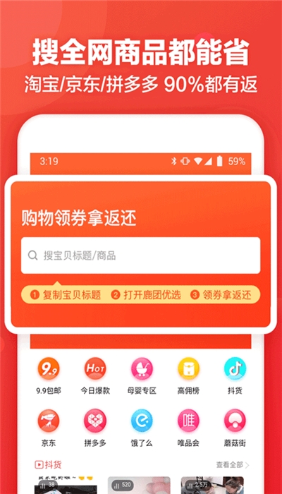 3.在购物之后还有返利的优惠,大部分电商产品都可以返利下单!