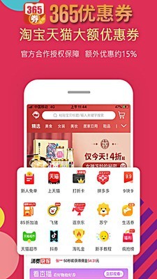 365优惠券是一款能够满足你所有购物需求的优惠网购平台,查看精品放心,365优惠券app拥有来自天猫、京东等多家购物平台上的众多内部优惠券,领了365优惠券app的券再购物价格更低呦!主打特色就是拥有非常齐全的商品购物优惠券,用户只要是想找商品优惠券,需要买东西的用户还可以使用365优惠券这款软件来随时随地浏览商品以及下单。