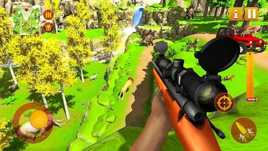 1、利用残酷的攻击技能瞄准和射击。尽情追捕野生动物,逼真的丛林世界中,你可以使用各种狙击枪和狩猎武器。