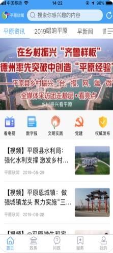 平原欣闻App手机官网版是一款专注于平原地区的新闻资讯类的手机端的App,为平原地区的人们带来最新的本地资讯前沿的信息,还由最新的政务信息为用户可以及时的进行呈现,大大的方便的市民的生活的环境,同时也扩宽了他们的知识面。用户能够通过软件了解到当地的政务信息以及最新的本地资讯,还能实现在线问政,并且为用户提供了违章查询、快递查询、话费充值、天气预报等一系列的便民服务,随时了解本地新闻资讯,政策要闻,还有政务查询办理服务,在线咨询,还有便民服务功能,需要的可以下载平原欣闻app使用!