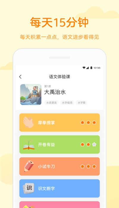 1.选择语文体验课,能够帮助用户了解到更多学习的课程,还有各种内容;