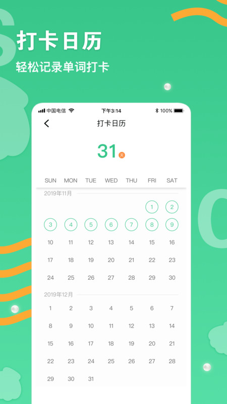 1、背单词学习每日学习打卡日历,再也不担心忘记学单词了。