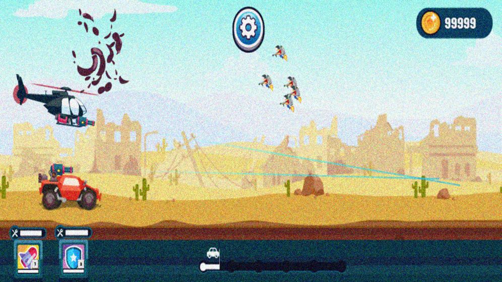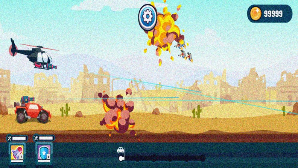3、改装你的小车辆,让它具备更强的能力,一次来击败更多前方挡路的敌人;