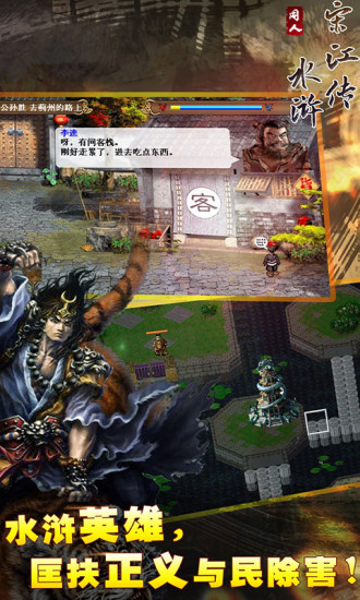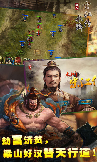 这是一款以《水浒传》为题材的回合制战棋类游戏,游戏中以宋江为主角率领107个好汉,通过一系列反抗压迫、英勇斗争的生动故事,揭示了当时的社会矛盾,暴露了封建统治阶级的腐朽和残暴,揭露了当时尖锐对立的社会矛盾和“官逼民反”的残酷现实。