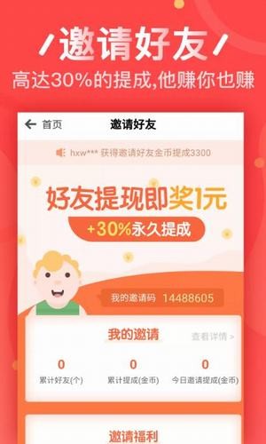 邀请好友就可获得金币奖励,邀请的多,你就会赚的越多,可以获得平台的多重金币奖励,提成奖励可是无上限的!
