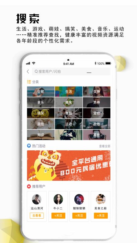 闪米社交app是一款多功能的短视频社交娱乐平台,可以在线观看各种美食小吃,流行音乐,动漫,生活小段子等,各种短视频,有了闪米app,在家足不出户,也能看到外面的万千世界,还可以亲子体验一下直播的乐趣。有语音,文字聊天,用起来很方便,省时省事,随时随地的畅聊,还可以根据个人喜好,来收藏自己喜欢的主播和短视频,让你的生活变的不枯燥。