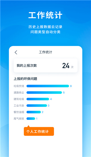 2、工作统计历史上报工作详情难量化,美境相机自动记录历史统计数据,并对污染上报问题进行分类,问题情况更清晰。