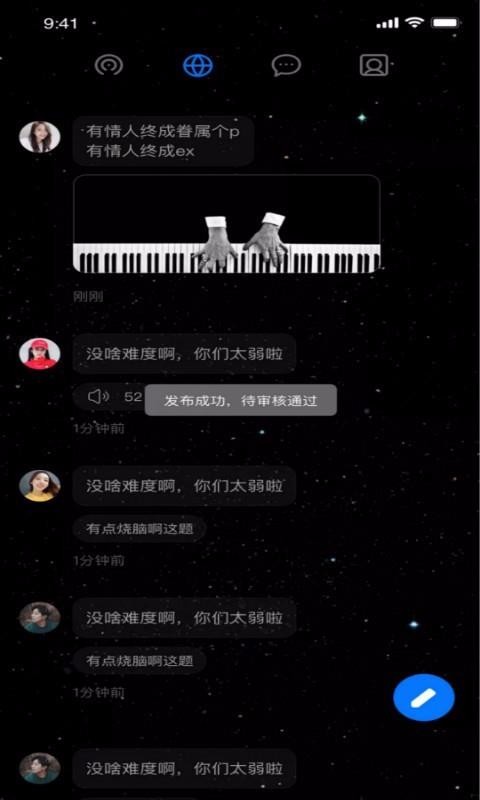 4、体验音乐社交,任何一个喜欢音乐的人可以在这里找到庞大的组织而摆脱一个人的状态;