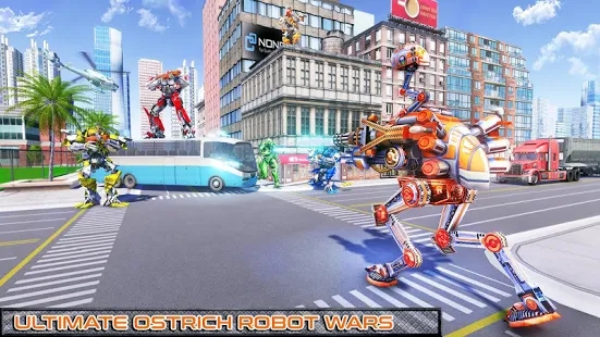 鸵鸟机器人汽车变形战争游戏安卓版:你喜欢玩未来机器人战争游戏吗?将会为你提供全新的鸵鸟机器人,拥有独特的变形能力,在三种形态中自由的转换,让你拥有强大的作战能力,消除城市中的黑手党,保护城市不受侵害!在城市中的居民苦不堪言,经常受到邪恶势力的威胁,是时候来一场大清洗了!《鸵鸟机器人汽车变形战争手游》这是一款非常好玩刺激的3D类变形金刚动作射击闯关手游,游戏画面非常饿细腻逼真,游戏中玩家将扮演一名汽车机器人,你可以变化成为多种机器形态,发挥你极强的作战能力,在城市中惩奸除恶消灭各种坏蛋与入侵者守卫城市的安全,享受各种打斗射击快感。