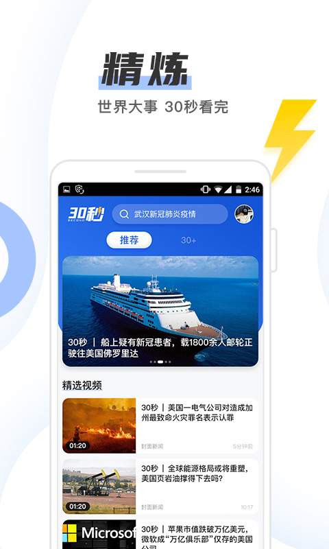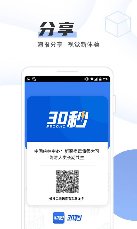 30秒官方新闻APP是由四川省当地的新闻人民报社重磅推出的一款新闻阅读平台。这款软件可以直接安装到用户的手机,或者是平板上面,用户能够随时随地自由的进行各种新闻咨询,查询观看。上面的新闻也都是每天自动进行更新的,有国内的各种热点社会新闻以及国际上面的各种风云变化。