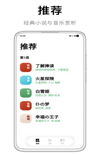 3、内容推荐经典小说,音乐赏析,不定期更新的精选内容;