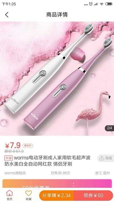 3.首页有推荐的一些商品,点击可以查看是否有优惠券