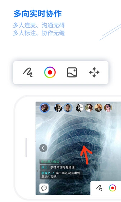3.进行远程的医疗诊断模式,能将检查的电子结果发布到公屏中。