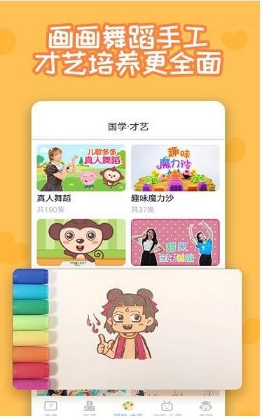 5.才艺学习:丰富的才艺培养类内容,国学经典、三字经、弟子规、唐诗宋词、趣威小课堂、小鸡彩虹音乐、学画画、真人早教舞蹈等。从多个角度出发,培养孩子对艺术的想象力和创造力,让孩子的心智得到全面的发展。