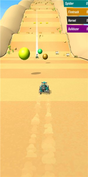 沙丘越野大乱斗一款休闲十足的沙漠赛车比赛,玩法非常的丰富多彩,参加一场史诗级别的沙丘比赛,玩家们会同时进入一个场地,在比赛倒计时结束之后,就会开始冲刺,你可以自由的控制车辆,在刚开始的赛道上是比较平坦的下坡路,可以很好的让你完成加速,路途中还有超多的小球,还可以出发泥石流特效,喜欢的快点来本站一起玩耍吧。