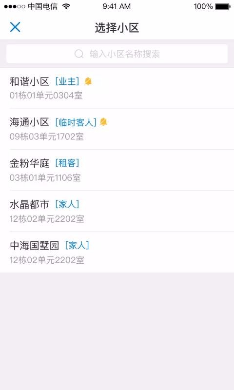 4、小区选择,直接输入相应的小区名称即可进行搜索查看;